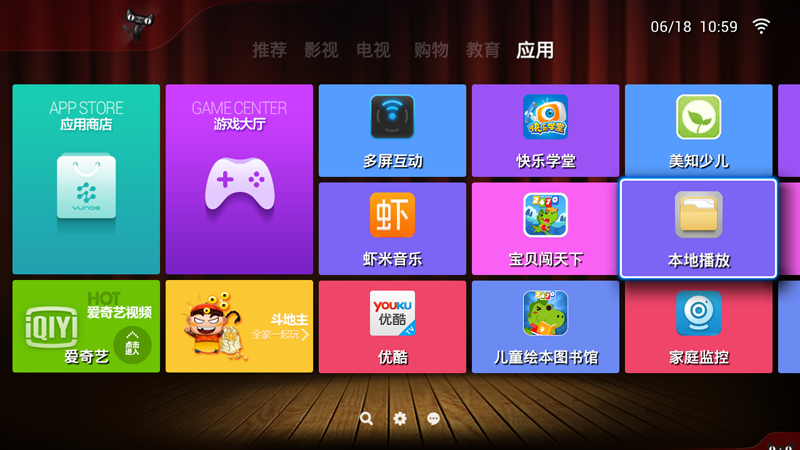 2、天猫魔盒插入U盘,会自动检测到,选择全部。没有自动识别也可以通过应用——本地播放找到U盘;